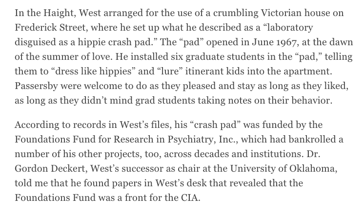 The description of his “open” apartments closely parallels the activities of recognized figures associated with the infamous MK-ULTRA project, including Dr. Louis Joylon West. In an excerpt from his book, journalist Tom O’Neill writes: archive.is/ZOeI7#selectio…