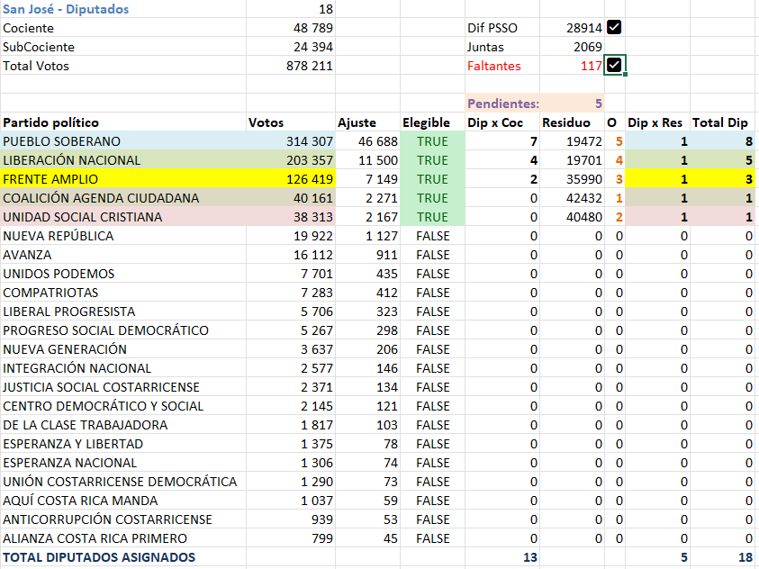 Primero dos consideraciones: 1. Supondremos que todo voto de presidencia debe tener un voto de diputado para PSSO.