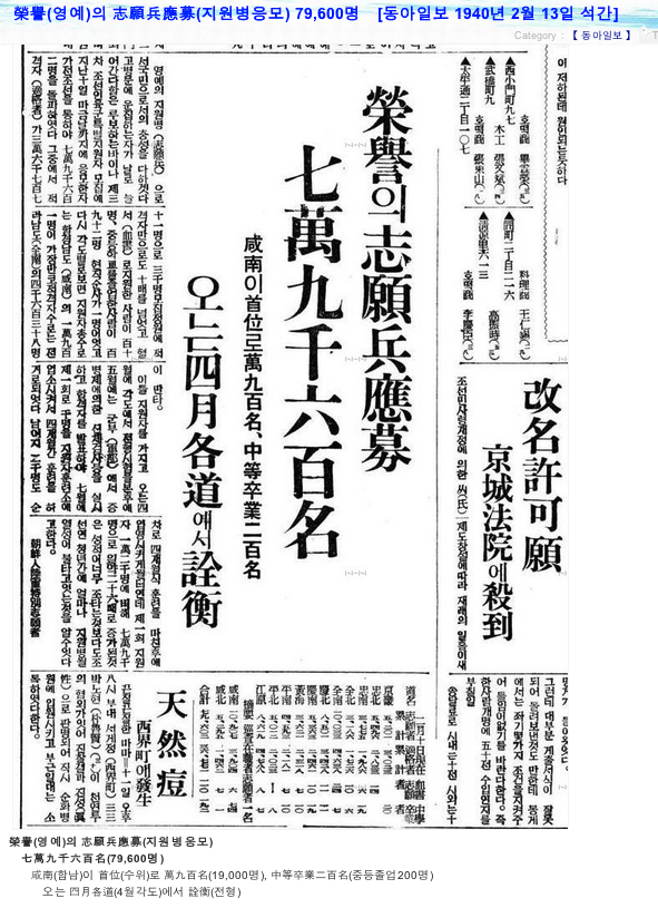 Recruitment of Koreans. Korean volunteers who were called for twice yearly, had been accepted for Japan Army since’37.