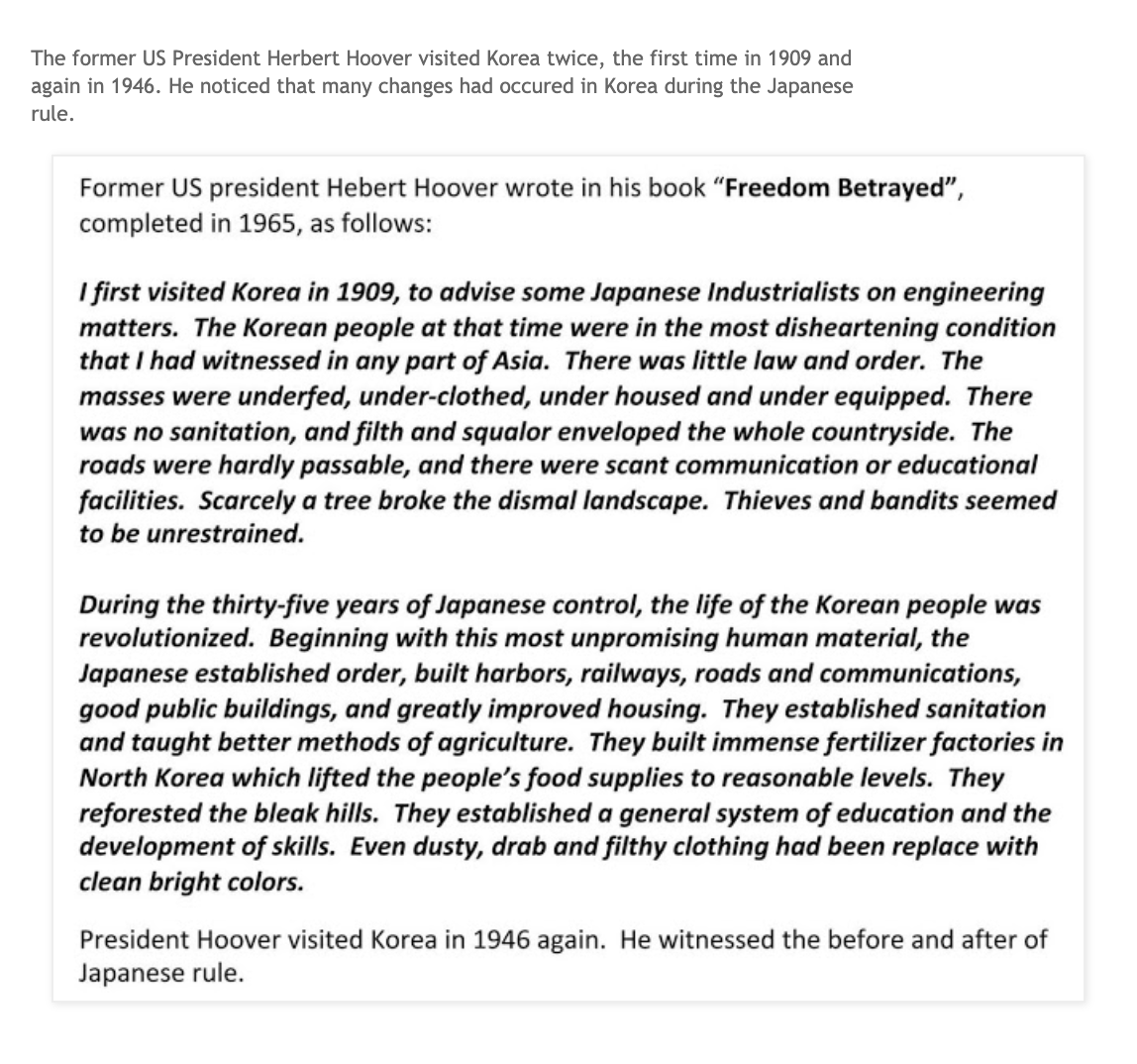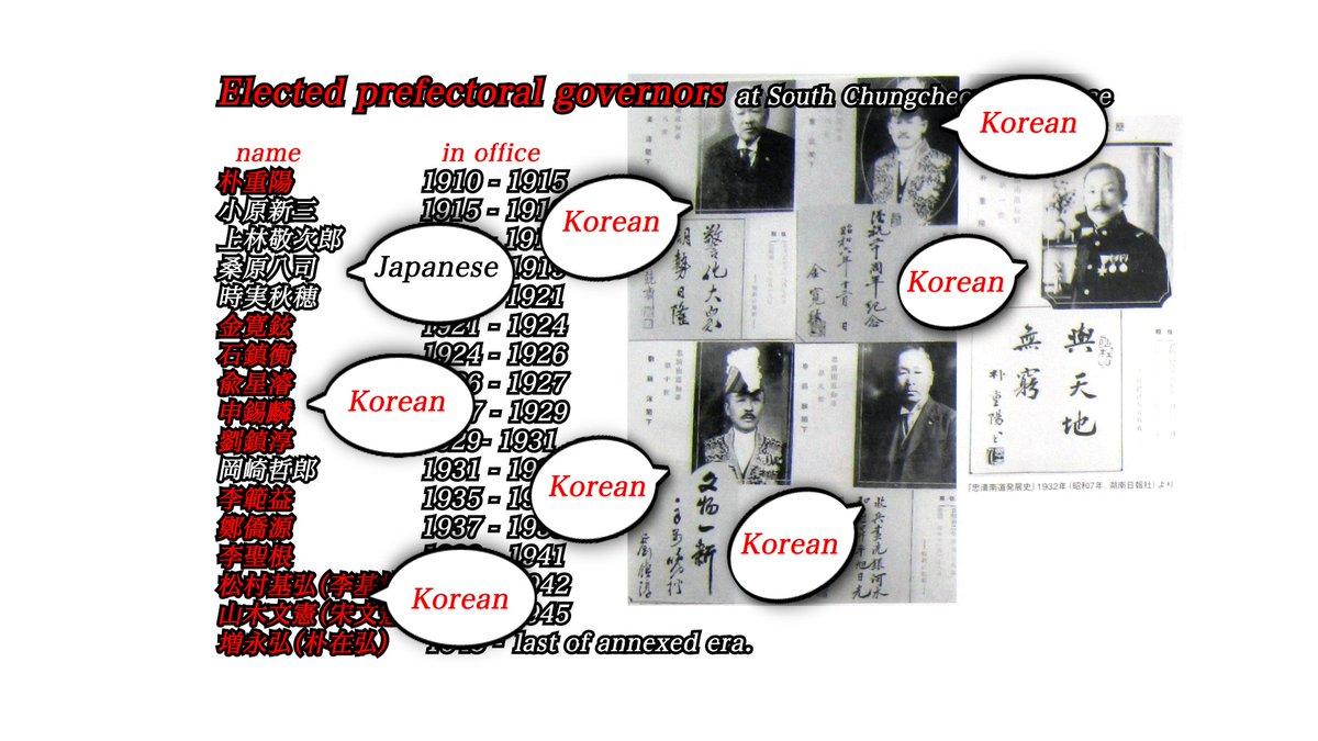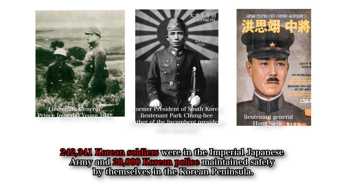 The former president of S.korea said "the Japanese education system was fair," He became Lieutenant of Japanese army. Korean had full suffrage, Korean politician Park Junk-eun won election in Japan. Mayors, Detectives, police were Koreans.