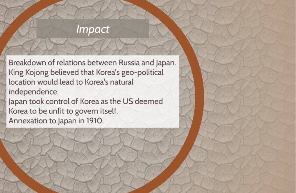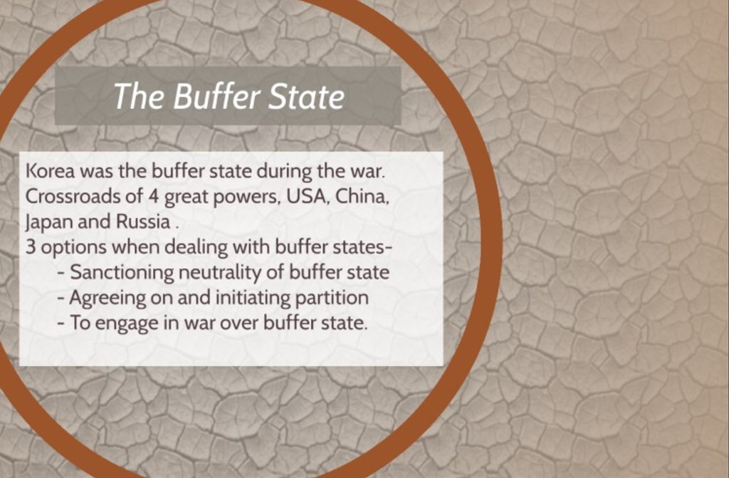 Korea unable to function as an independent buffer state.Japan took control of Korea as US deemed Korea to be unfit to govern itself.