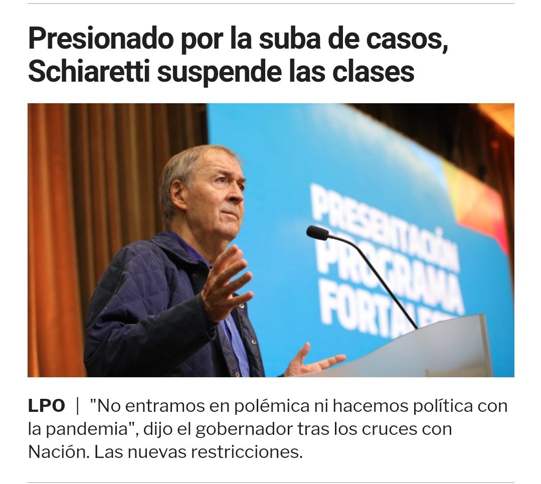 La oposición militante de la muerte sigue denunciando cualquier cosa mientras CABA tiene una tasa de contagios de Covid de 1.050 cada 100 mil habitantes y Córdoba 1.090 cada 100 mil. Por eso esa provincia fascista no tuvo más remedio que suspender la presencialidad en escuelas.