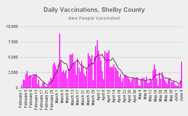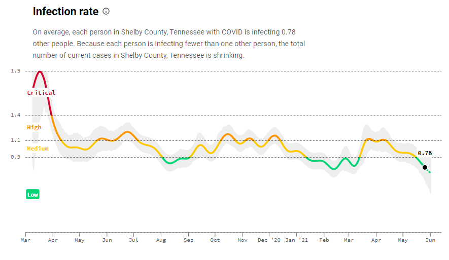 And he estimated that actual infections in Shelby County were about 3x higher than reported. So, over 30% have immunity from infection.