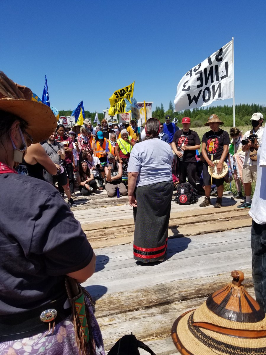 Indigenous leaders welcoming visitors now, and reminding them to go back to their communities and spread the word. #StopLine3@IENearth