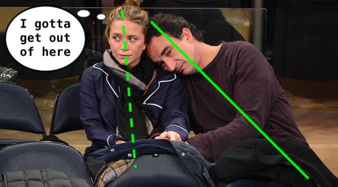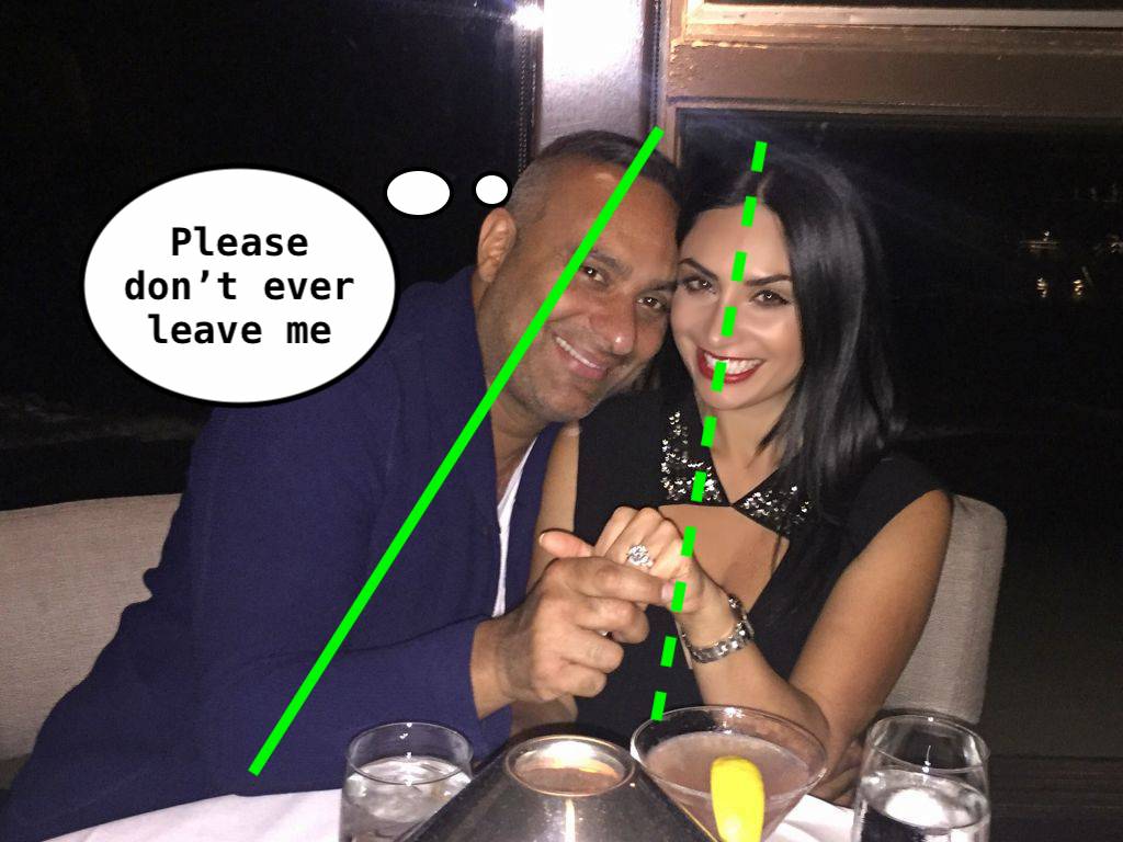 Look at the picture below. Remove him from the photo (bottom left), and she is still centered in her own reality. Remove her from the photo (bottom right), and he is off center, off balance. Don't lose your balance. Don't lean in!