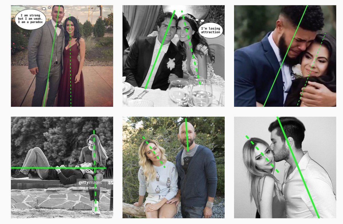 "In this image they are expressing the utmost comfort with one another" — No. In this image, he is being submissive to her. You can't trust what you read in magazines or see on TV. They want weak and docile men. Weak men are easier to control. Don't lean in!