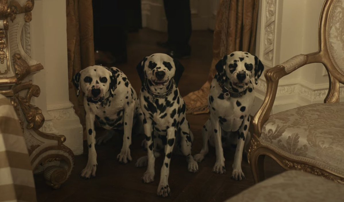 Igual, la película nos da pistas falsas: la primera aparición de los dálmatas es la más clara. Pero luego hay unas insinuaciones de manchas negras sobre blanco en su infancia y por último, el traje moteado del que surge la gran duda: ¿está hecho de dálmatas?