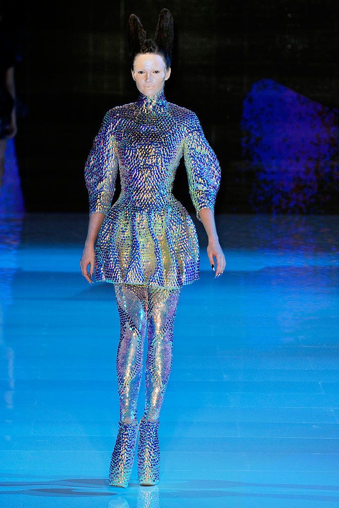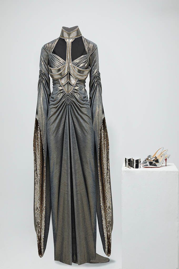 Ah, y los brillantes diseños de Alexander McQueen (quien nos dejó muy pronto) son referentes de varias siluetas, incluida esta y el vestido de mariposas (otra muestra de la fantasía de la película y un vestido que de forma LITERAL expresa metamorfosis, tema clave en la trama)
