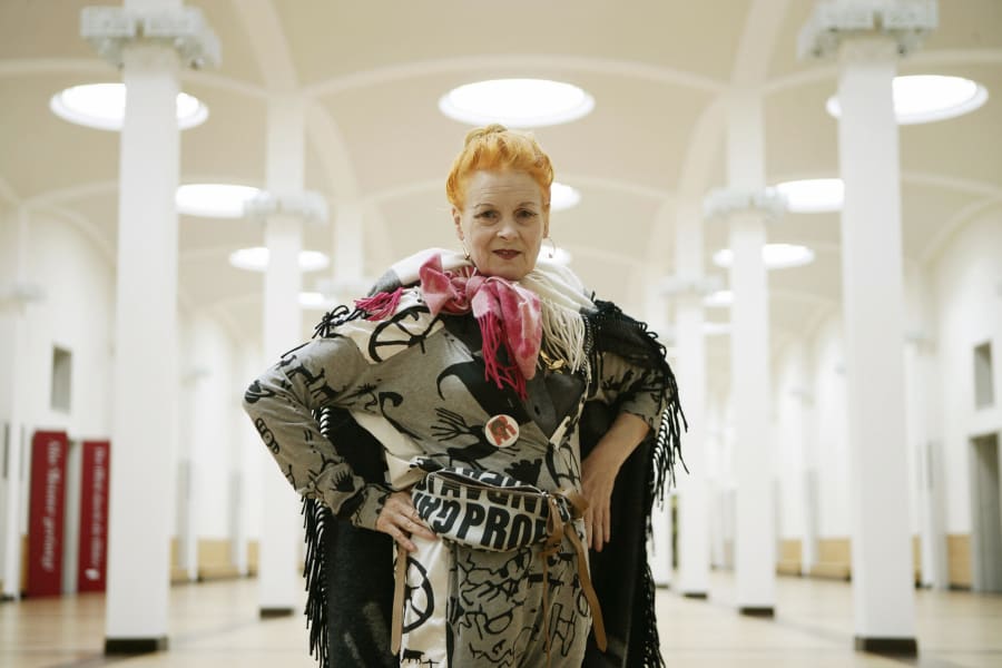 Beavan tomó inspiración de varios diseñadores: Además de McQueen está la gran dama del punk: Vivienne Westwood, la figura más representativa de la moda punkera inglesa desde los 70s con su tienda SEX y luego con su marca. Échenle ojo a esa señora, personaje muy chimbita.