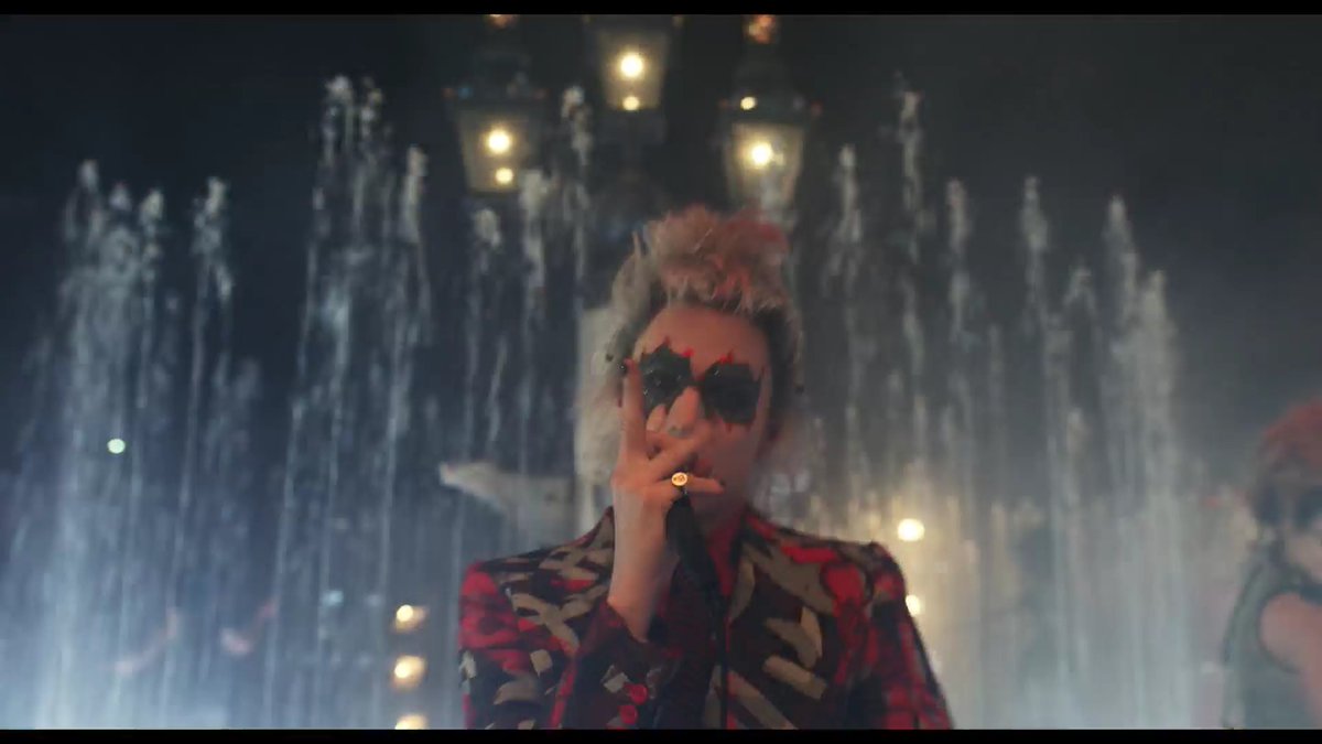 Este es uno de los looks de esta película que pasará a la historia (y veremos en tutoriales y halloween) fue esta genialidad de la directora de maquillaje Nadia Stacey. Fun fact: la tipografía es referencia a Sex Pistols.