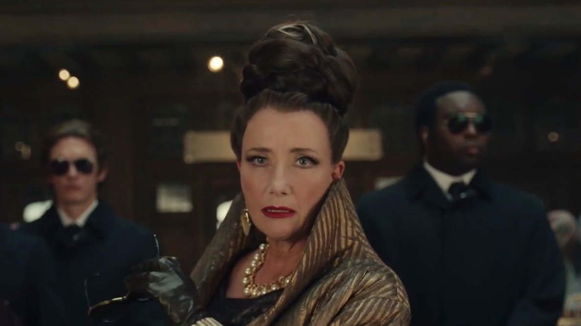 Hasta los peinados y tocados son tiesos y monumentales. La hacían más alta en presencia de otros, y bastante rígida (Emma Thompson además le metió tremendas microexpresiones).