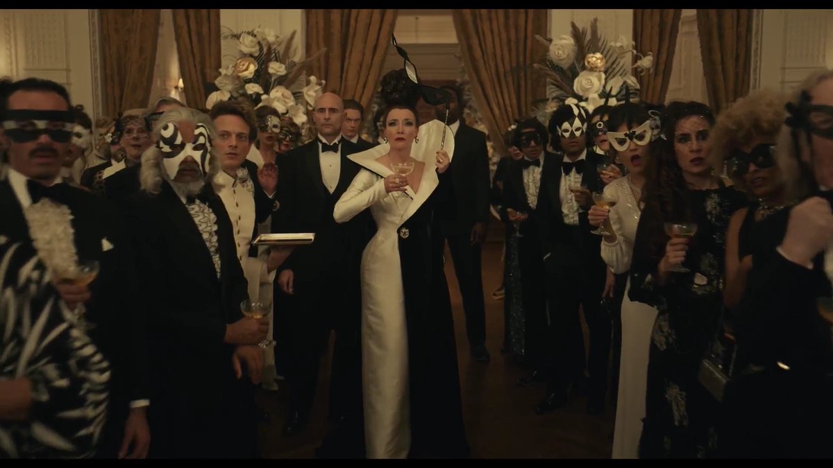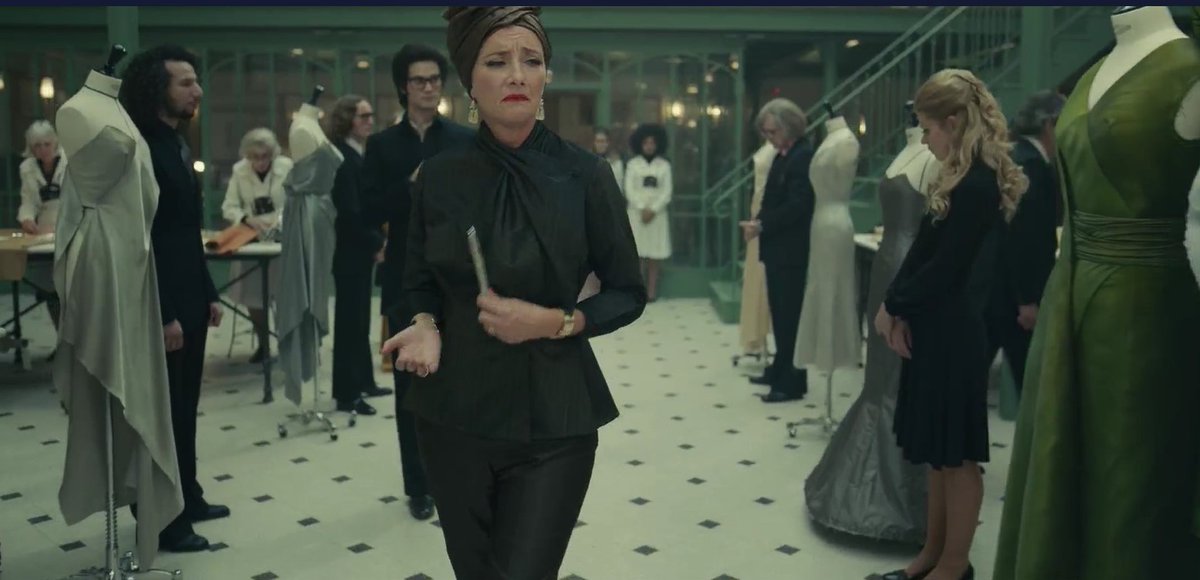 La entrada de Cruella es la metáfora de la nueva moda que irrumpe para barrer con la tendencia adoptada masivamente. Un cambio estético que produce fascinación y también incomodidad.
