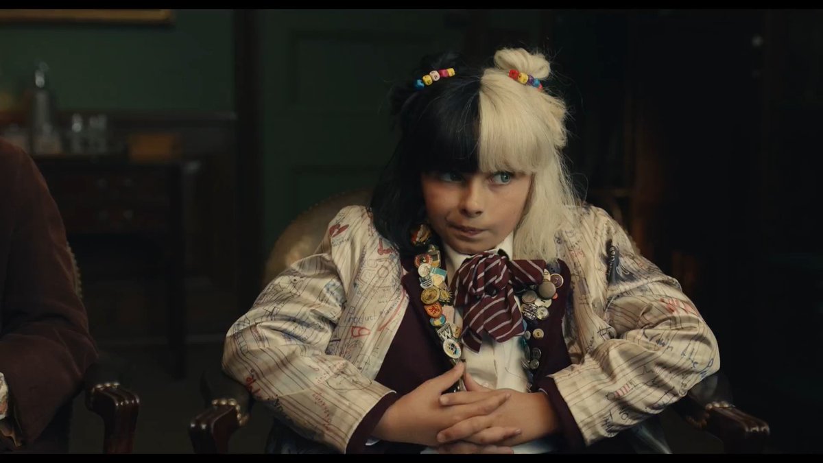 ya hablando de Cruella (Estella): es una niña DIFERENTE. El pelo es una expresión visual de su identidad extraña, que causa RECHAZO. Las intervenciones punkeritas al uniforme muestran que se rehúsa a ENCAJAR, se sabe especial. Bellos detalles que solo se ven pausando en ultra HD.