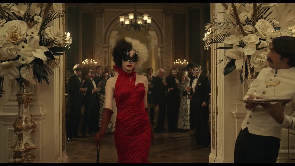Cruella es una historia en la que la moda ES un personaje más, así que el diseño de vestuario no es un apoyo que provee realismo sino un recurso que desarrolla la trama, crea escenas memorables y se roba el show.