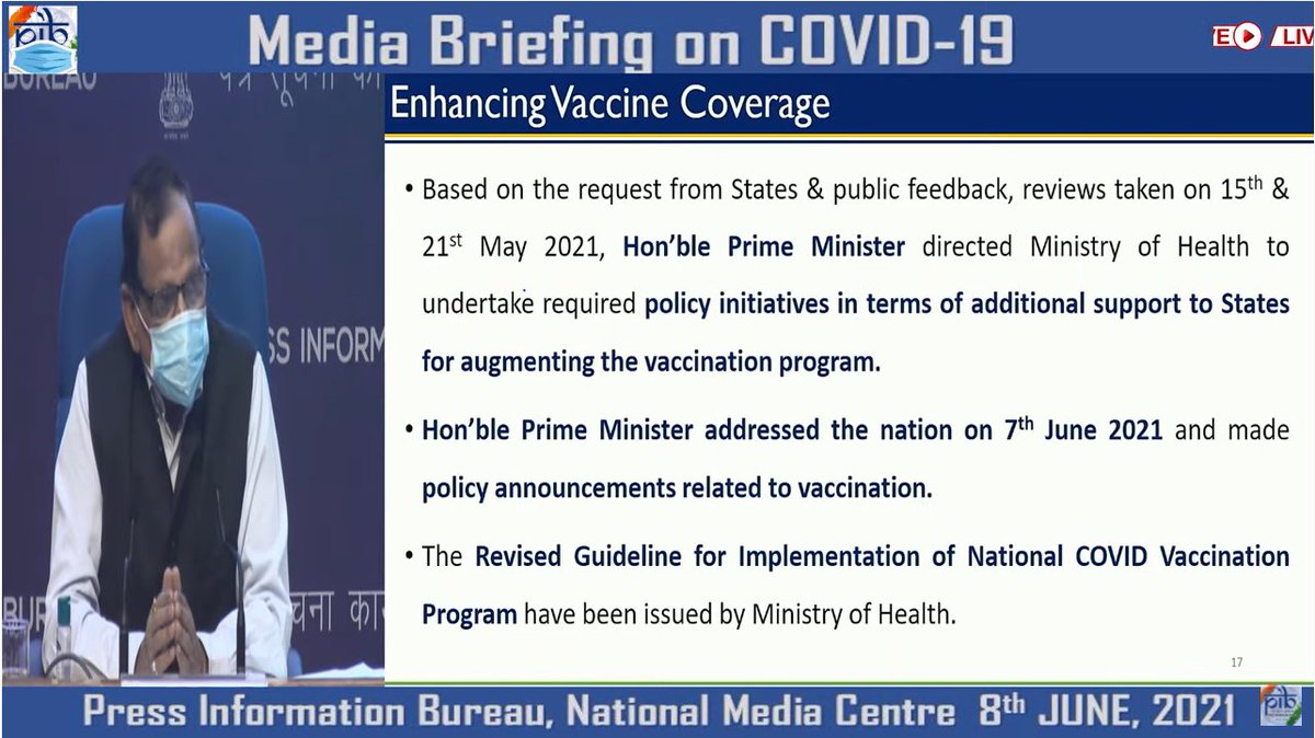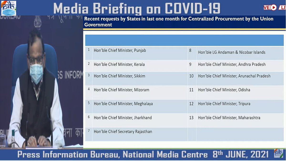 पुन्हा एकदा पूर्वीसारखीच केंद्रीय खरेदी प्रक्रिया सुरू करावी आणि एकत्रित पद्धतीने लसीकरण कार्यक्रमाची अंमलबजावणी करावी, अशी 12 राज्यांकडून विशेषत्वाने विनंती करण्यात आली.