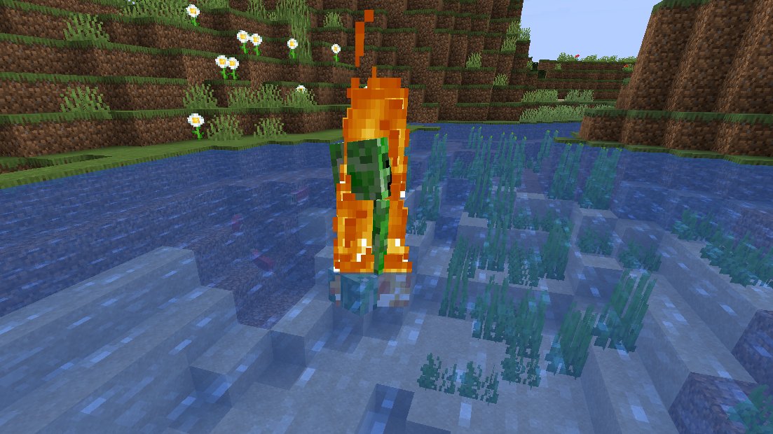 #15 Agora é possível adicionar uma nova tag NBT para entidades. A ''HasVisualFire'' deixa qualquer entidade em chamas mesmo sem contato com o fogo