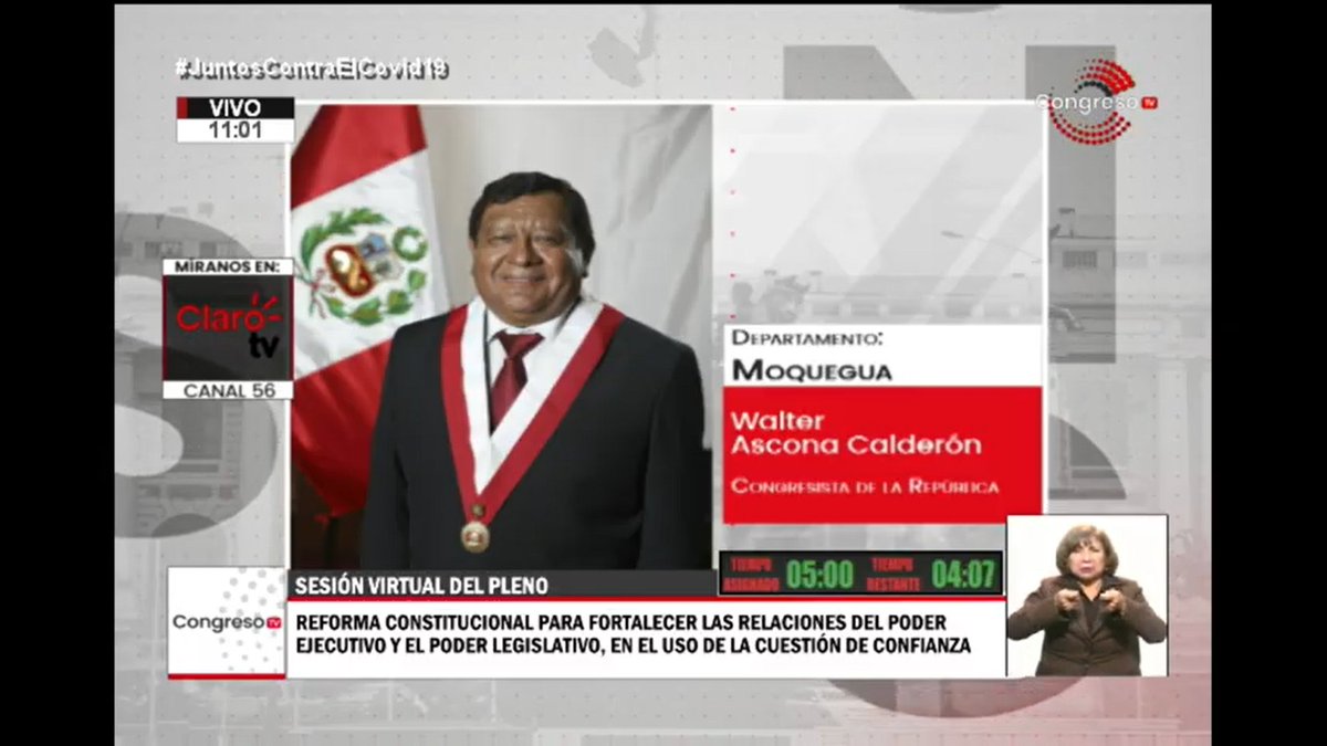 #Congreso | Rebelión en APP. Walter Ascona (Moquegua) expresa que está en contra de la reforma al caballazo de la cuestión de confianza y advierte que esto es impulsado en función a los resultados electorales de esta segunda vuelta.
