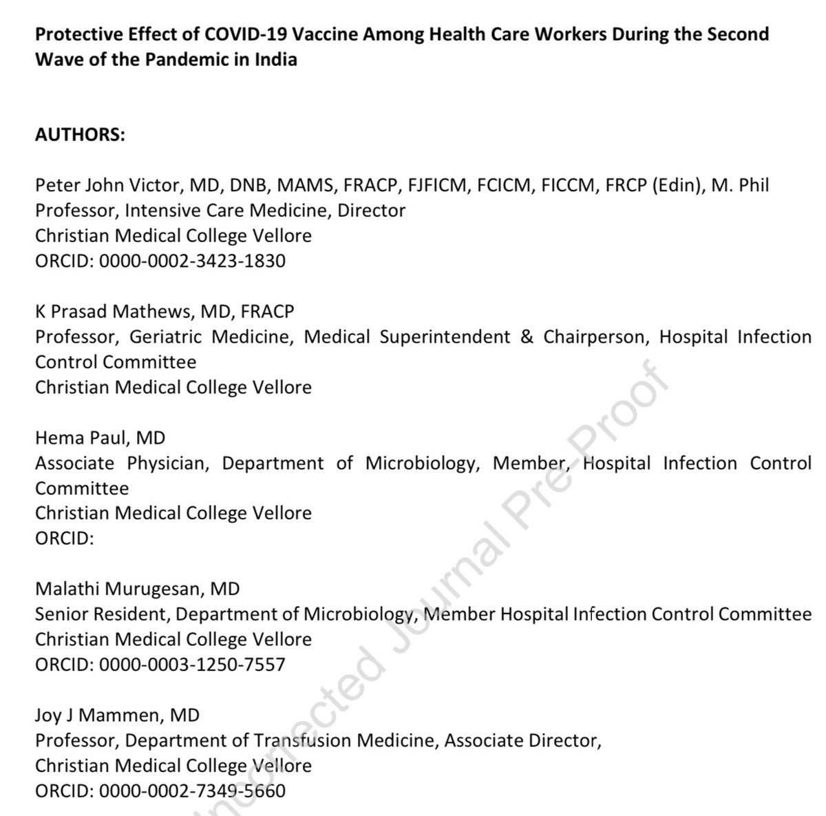 2/ This study was done between Feb - May 2021. No deaths were seen in 8958 vaccinated healthcare workers. One death in 1609 unvaccinated healthcare workers.