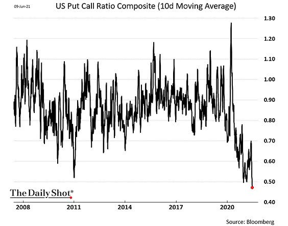 The put-call ratio 10-day moving average is indicating outright greed in our opinion.