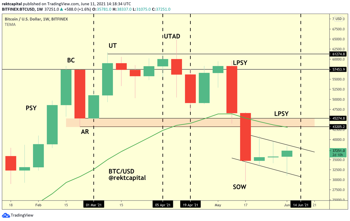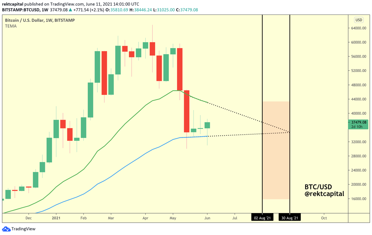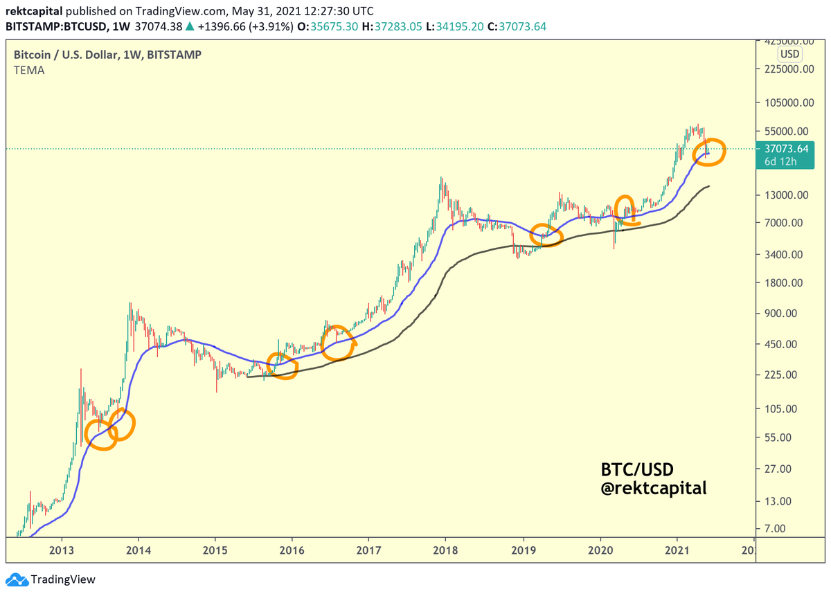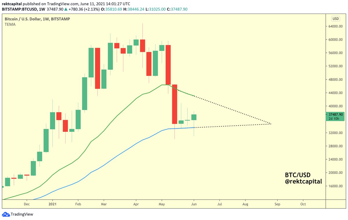 It's really important that the 21 WEMA doesn't turn into resistance upon a $BTC recovery towards the low $40,000s (i.e. the price level where the 21 WEMA now resides)