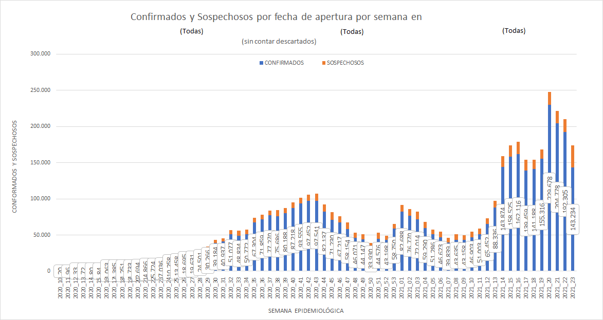 Cierra semana 23 con clara baja de casos confirmados. Sin datos de UTI.