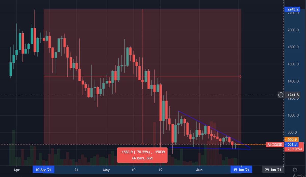 $ALCX cayó 70% desde su ATH de alrededor de $2000. Y la verdad con toda la expectativa que hay alrededor del lanzamiento creería que tocó fondo por ahora.