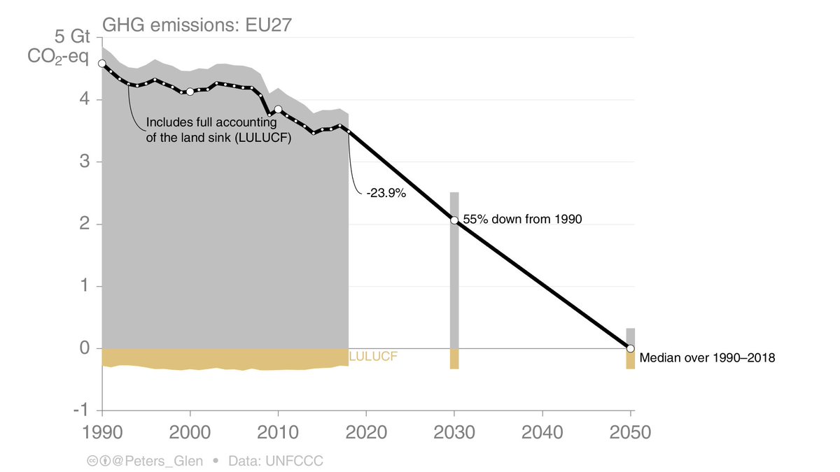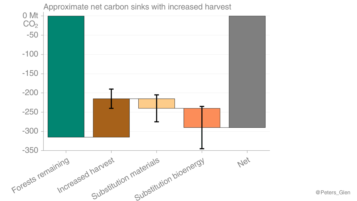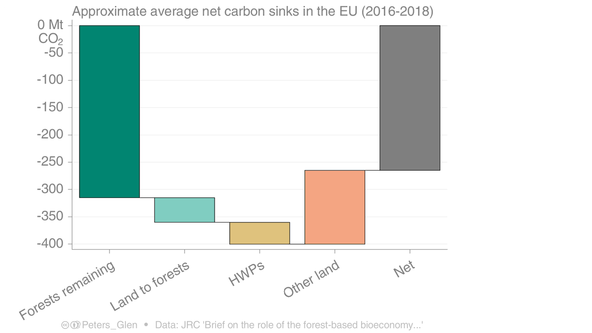 Just focusing on forests, the EU could increase harvest, weakening the sink, & use the harvest to displace materials (e.g. cement in construction) or fossil fuels (e.g., bioenergy).