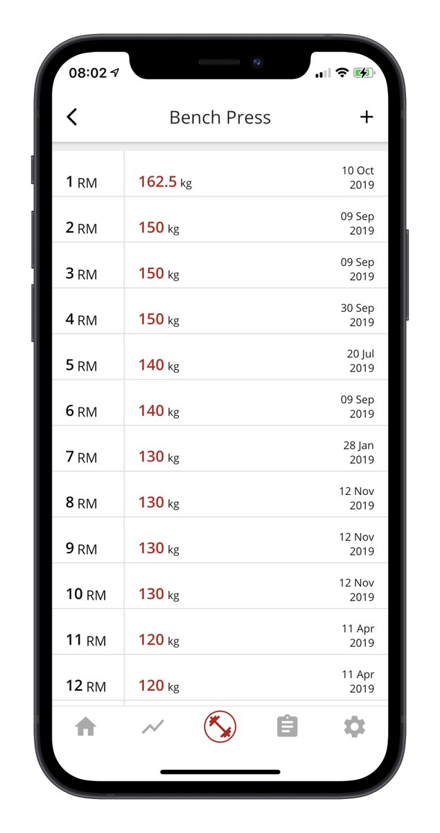 StrengthLog keeps track of your 1RM, 2RM, 3RM, 10RM, 20RM, etc.