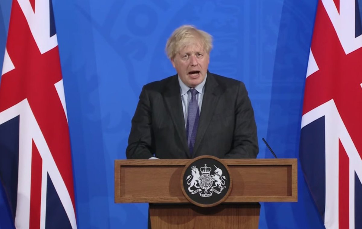 "To give the NHS that extra time we will hold off step 4 openings until July 19, except for weddings that can still go ahead with more than 30 guests...and we will continue to pilot events such as Euro 2020 and some theatrical performances," Johnson says