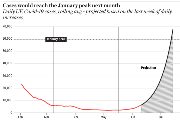 📈 The raw data does not look good. Cases of the delta variant have been growing exponentially from a low base since early May, and for the past seven days have averaged about 5,000 new cases a day