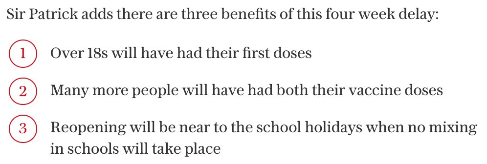 "We can give the NHS a few more crucial weeks to get those few remaining jabs into the arms of those who need them...I think it is sensible to wait just a little longer"