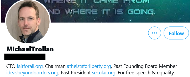 Of course that could just be they hired the same web designer right? Nope, that is the CTO of Fair For All and board member of Atheists For Liberty