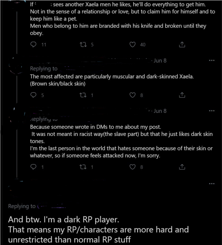had to softblock a mutual for this post; ive censored the name because i do not want anyone to simplify this into a "oh that one guy is so weird" thing--this is a PROMINENT ISSUE in ffxiv rp community.