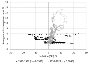 Figure 4 Inflation and interest rates, 1919 to 2021 (Here only shows long-term rates)