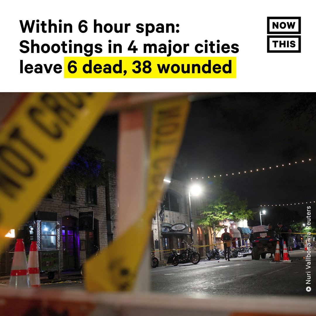 In just one 6-hour span over the weekend, mass shootings in 4 major U.S. cities reportedly left 38 people wounded and 6 dead. The shootings occurred in Cleveland, Chicago, Austin, and Savannah between late Friday night and early Saturday morning
