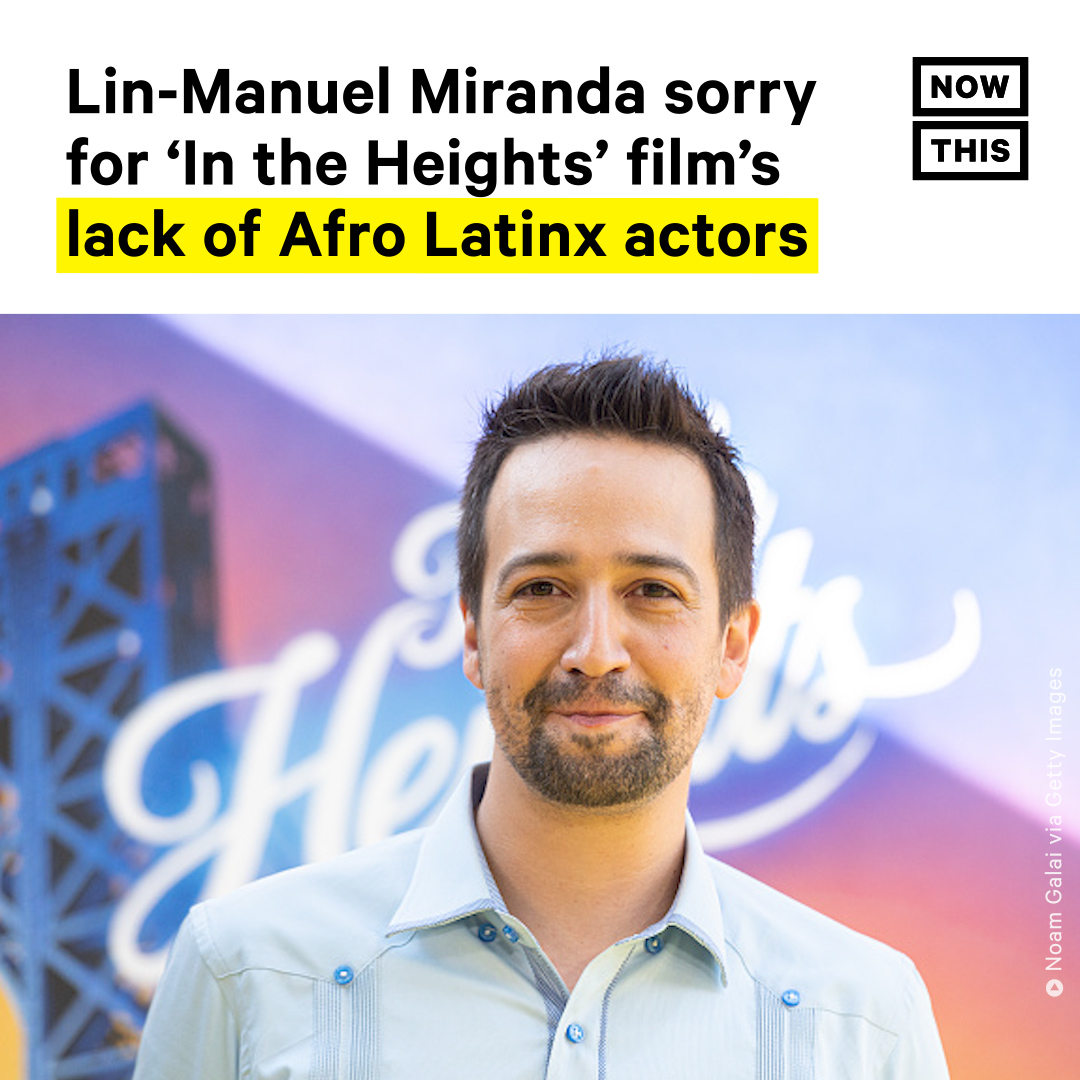 Lin-Manuel Miranda has issued an apology after the film adaptation of his musical 'In the Heights' was criticized for colorism in its casting.