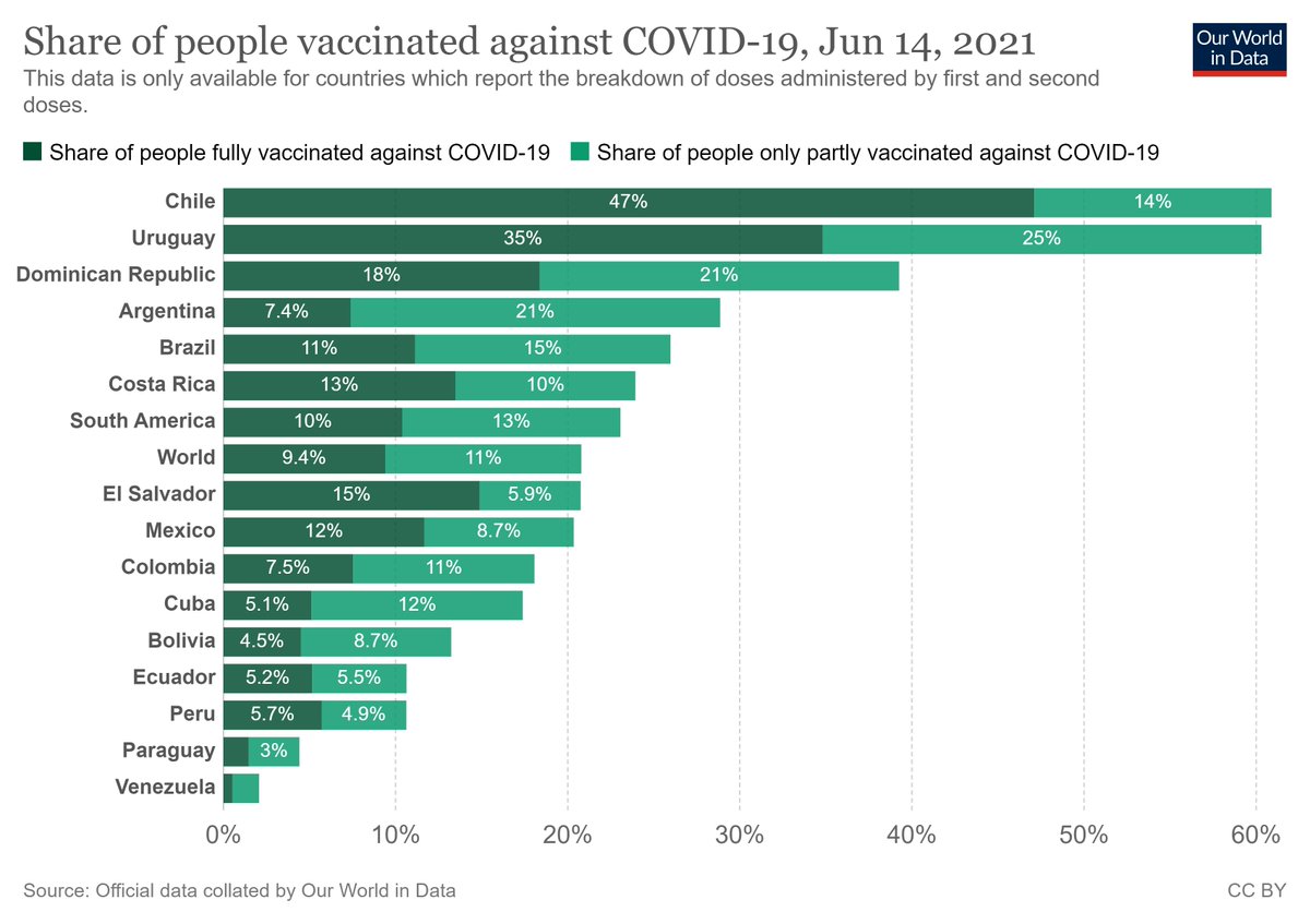 🔴Contrario a lo que se afirma, la tasa de población con al menos una dosis en🇨🇺 no es superior a la global, menos a la de América del Sur (por razones obvias no comparo con América del Norte). Incluso el gráfico usado en el artículo lo demuestra🤔. 2/n