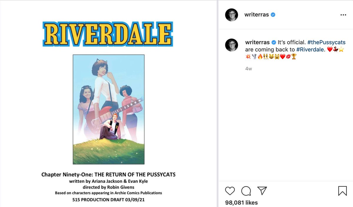 Whatever the finale is with Hiram, Archie is going to get hurt, and based on Evan's interview and the emojis he shared for them + RAS's post, it's going to be for Veronica against Hiram.