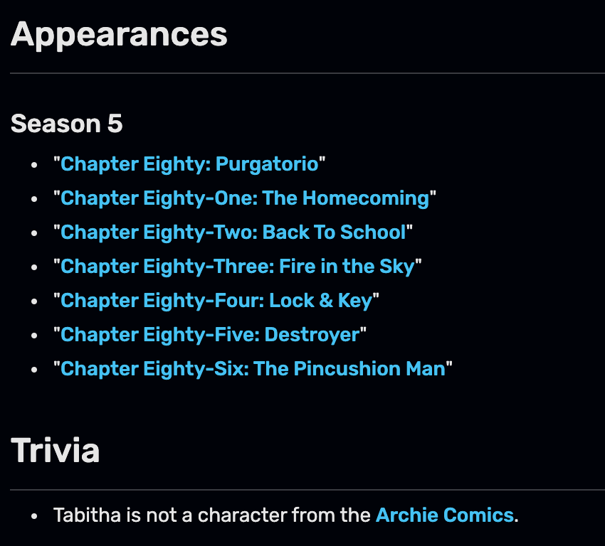 1.) Tabitha Tate was created for Riverdale,