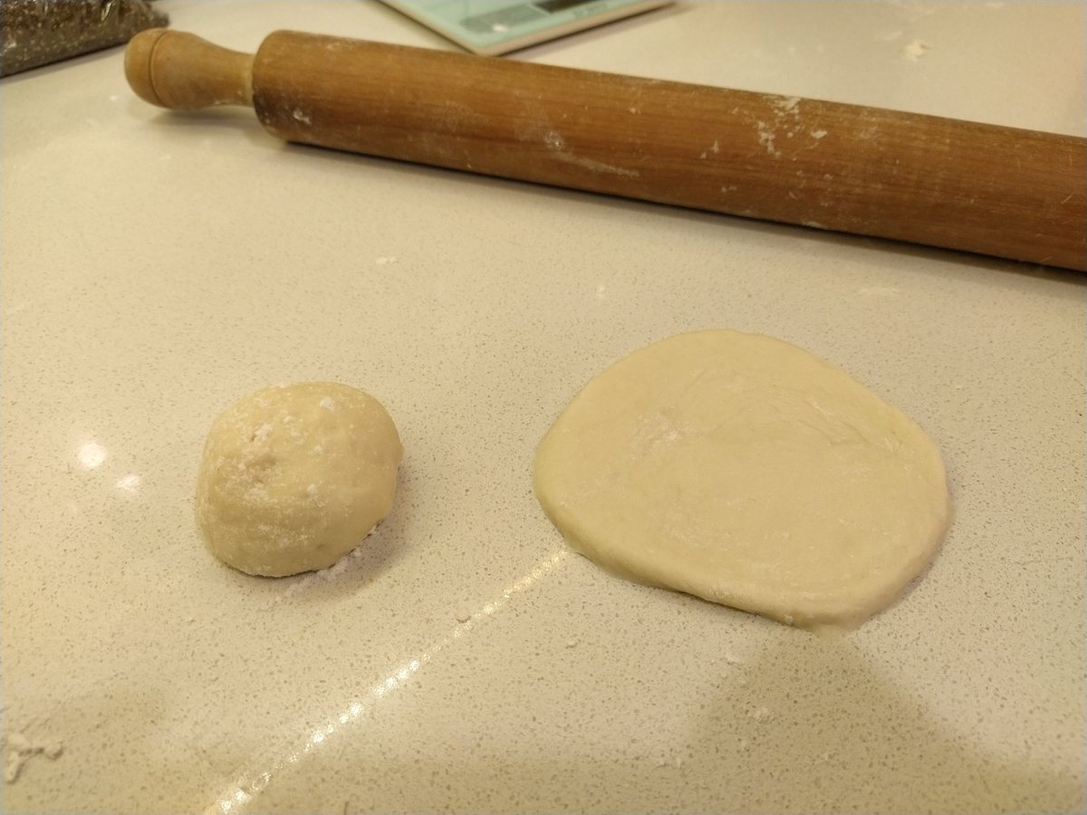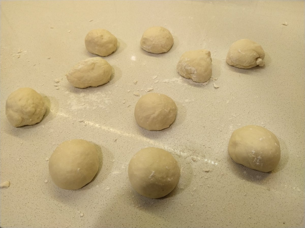 Toman el otro bollo de masa separado, y lo dividen en 10 bollitos de 43gr (+/-) cada uno.