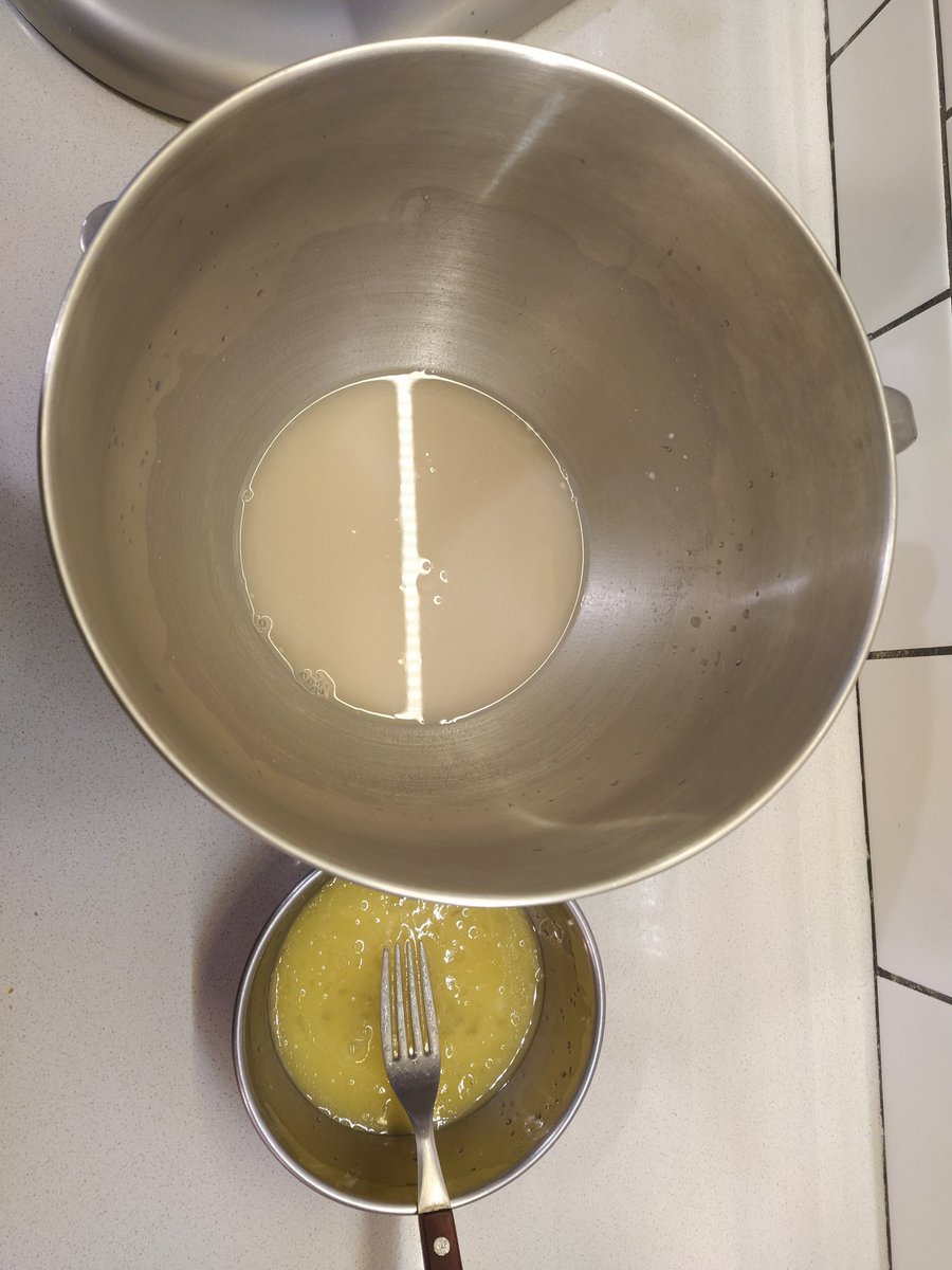 1.- Yudane (pueden ver la técnica entera en el hilo del pan de molde acá: