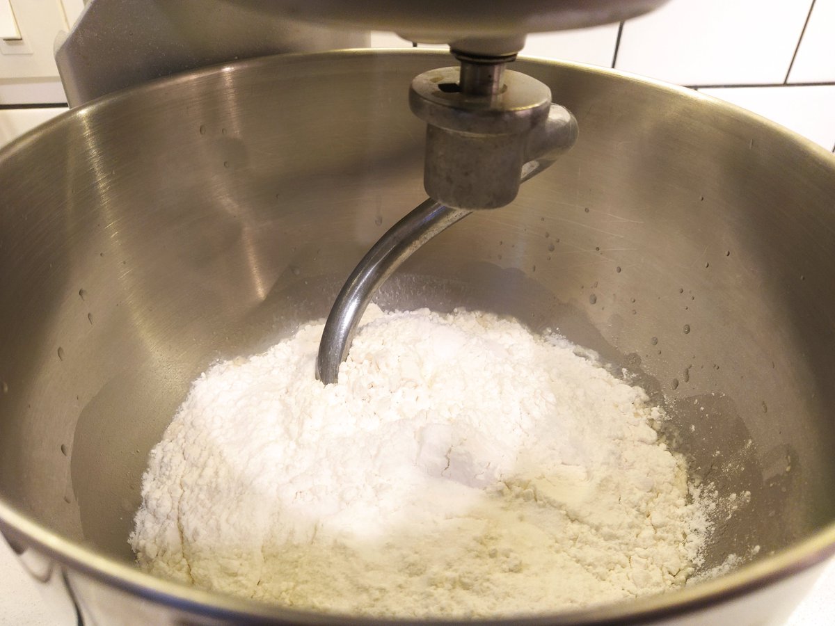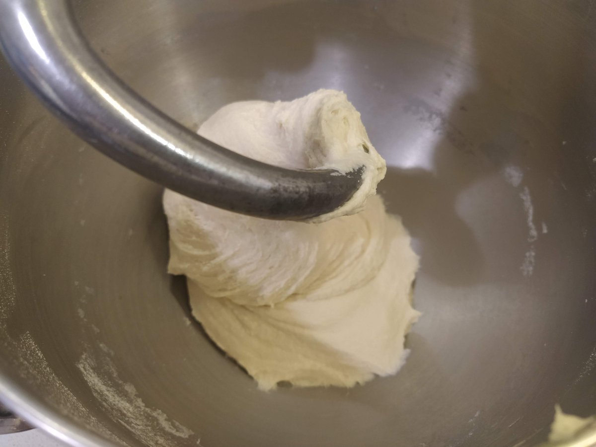 Pueden hacerlo en amasadora, pero siempre manejen con cuidado masas con harinas livianas como ésta, porque no son muy tolerantes al exceso de amasado.