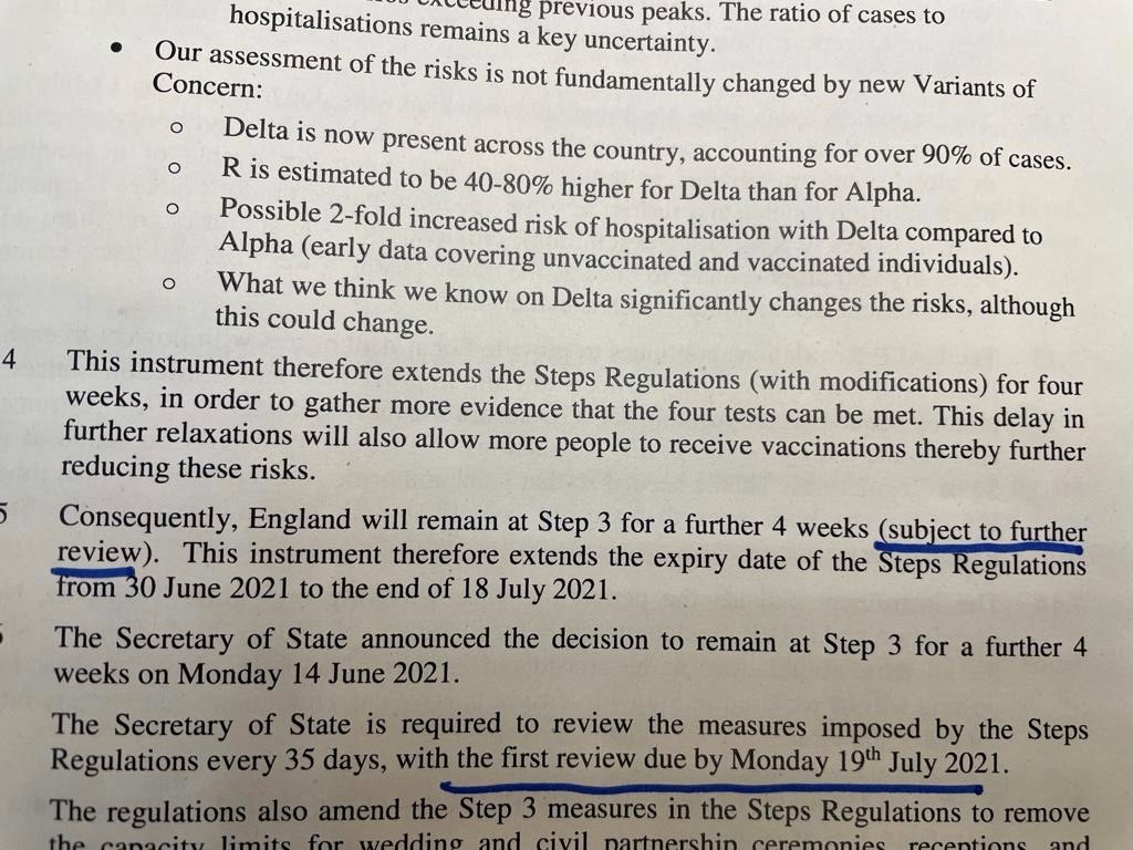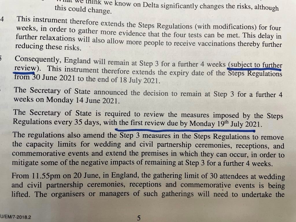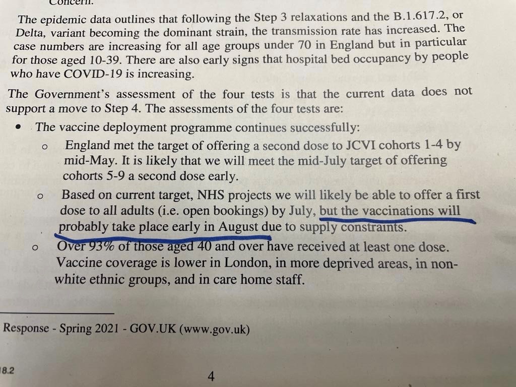 The explanatory memo accompanying these regulations - approved by @dhscgovuk - shows that the 1st dose vaccinations Govt wants to get done ASAP won’t take place until August, so people not protected until 2/3 weeks after that.