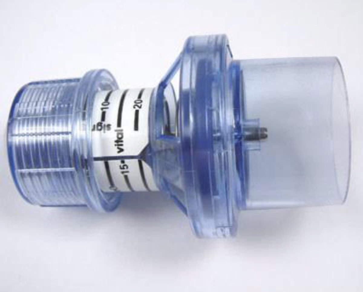 - Paciente sopra a seringa por 15seg (a idéia é criar uma pressão de aproximadamente 40mmHg, a força necessária para empurrar o embolo da seringa)