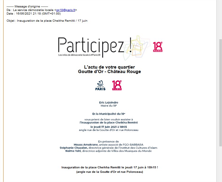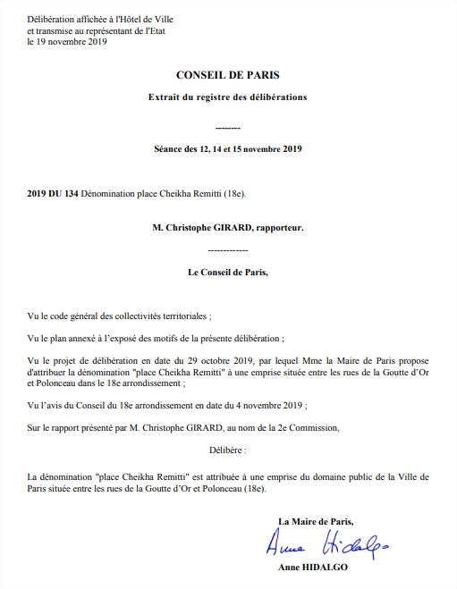 Un peu avant les municipales, surprise générale : Christophe Girard déclare au Conseil de Paris que la place sera nommée "Cheika Remitti".