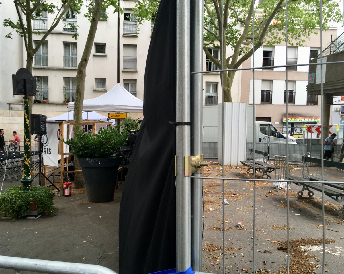 Tout l'espace, trottoir compris, était clôturé et gardienné par des vigiles privés plus des agents de la Ville.