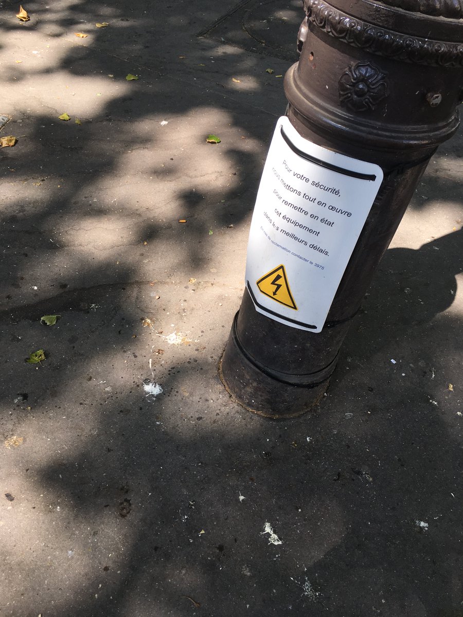 J'ai oublié de préciser, tellement cela va de soi, que ce réverbère situé sur la placette n'a pas été réparé durant les deux jours de nettoyage avant le passage des officiels (bah, ça ne se voyait pas trop, donc ce n'était pas important...).