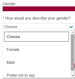 Sex is the protected characteristic and the only two possible options for sex are 'Female' and 'Male' as defined in the Act and consistent with biology, but you don't ask for that.