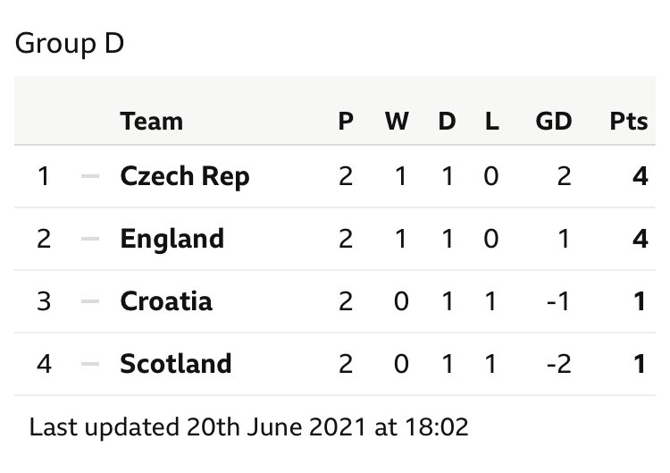 Group D. Scotland’s group. The banter result would be somehow the Czech side beating England by three goals. This is sadly unlikely #sco