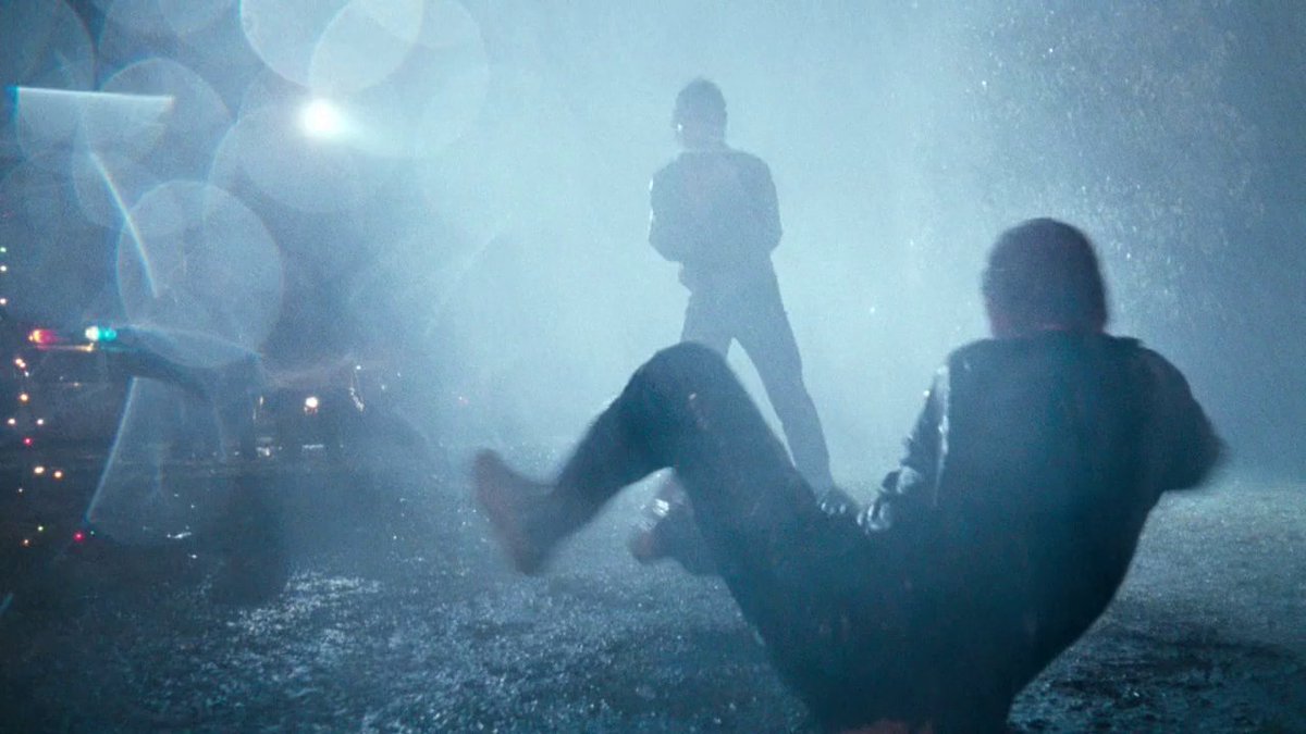 The fight opens with a close-up of the protagonist. It keeps things mysterious and intriguing, and tells the audience: this is who you must keep your eyes on. Pay attention to him. He then exits the frame from the right hand side. His movement marks the start of the battle.